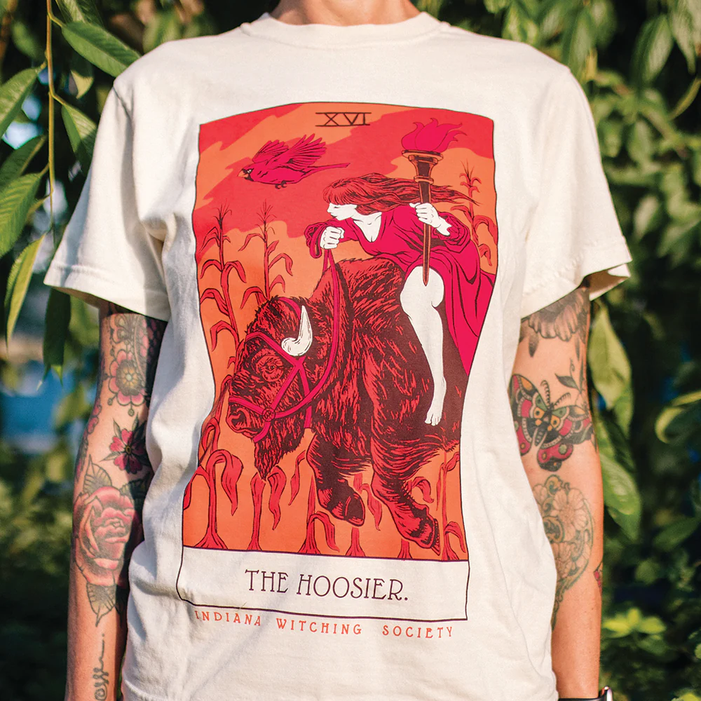This tarot-inspired addition to our Hoosier Halloween collection is meant to capture the wild Hoosier spirit--in touch and at peace with nature, enlightened by our surroundings and charging into a better future.