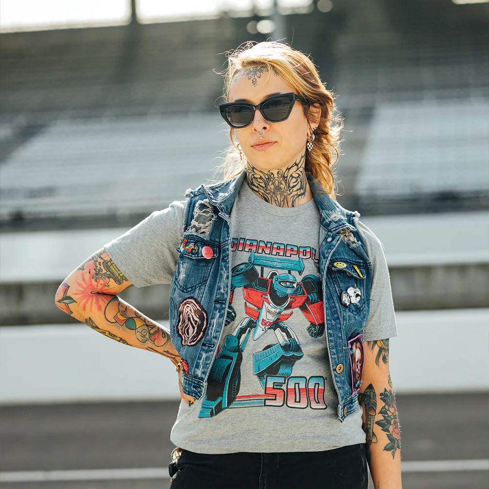 If you like your Indy 500 cars with a lot of power (and the ability to battle giant mechs), we've got the tee for you.